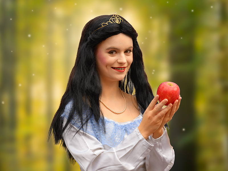 Schneewittchen ist klug, witzig und wunderschön. Genau diese Eigenschaften machen ihre Stiefmutter, die Königin, fürchterlich wütend. Auch der Zauberspiegel und ihre treue Zofe können sie nicht besänftigen. Als dann auch noch ein Prinz vorbeikommt und sich unsterblich in Schneewittchen verliebt, gibt es für die Königin kein Halten mehr. Die Lösung ist daher ganz einfach: Schneewittchen muss weg! Nur die Freundschaft zum Jäger des Schlosses rettet Schneewittchen das Leben. Sie flieht in den dunklen Wald um dort das Haus der sieben Zwerge zu finden. Nach anfänglichem Zweifel nehmen diese die Prinzessin gerne bei sich auf. Doch auch hier ist die Gefahr noch nicht vorüber. Die sieben Zwerge haben alle Hände voll zu tun, die Prinzessin vor den bösen Absichten der Königin zu beschützen. Wird es ihnen gelingen? Und was ist mit dem Prinzen?