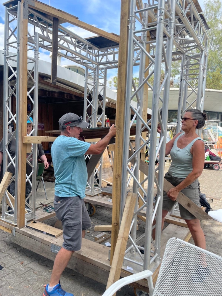 Die Schauspieler*innen proben mit Hingabe, während die Durchläufe kurz bevorstehen. Auch die Technik ist bereits voll im Einsatz und sorgt mit Licht und Ton für die perfekte Probenatmosphäre. Jeden Samstag wird fleißig am Bühnenbau gearbeitet, um rechtzeitig zur Premiere am 6. September alles bereit zu haben. Noch gibt es Restkarten – also schnell zugreifen und sich dieses Erlebnis nicht entgehen lassen!