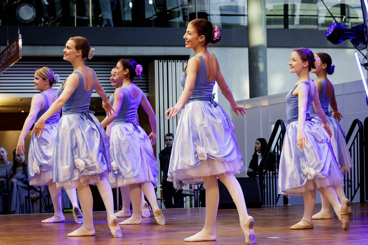 Das Musical hatte die Möglichkeit, mit der Tanzschule ein Programm auf der Atriumsbühne zu präsentieren. Die Regisseure von CHESS, Sascha Zulott und David Kovacs, gaben ein kurzes Interview, bevor die Darsteller*innen einige Songs aus dem Musical vorführten. Anschließend zeigte die Tanzschule, nach einem Gespräch mit Tanzschulleiter Gregor Prust, verschiedene Tänze aus ihrem Repertoire.