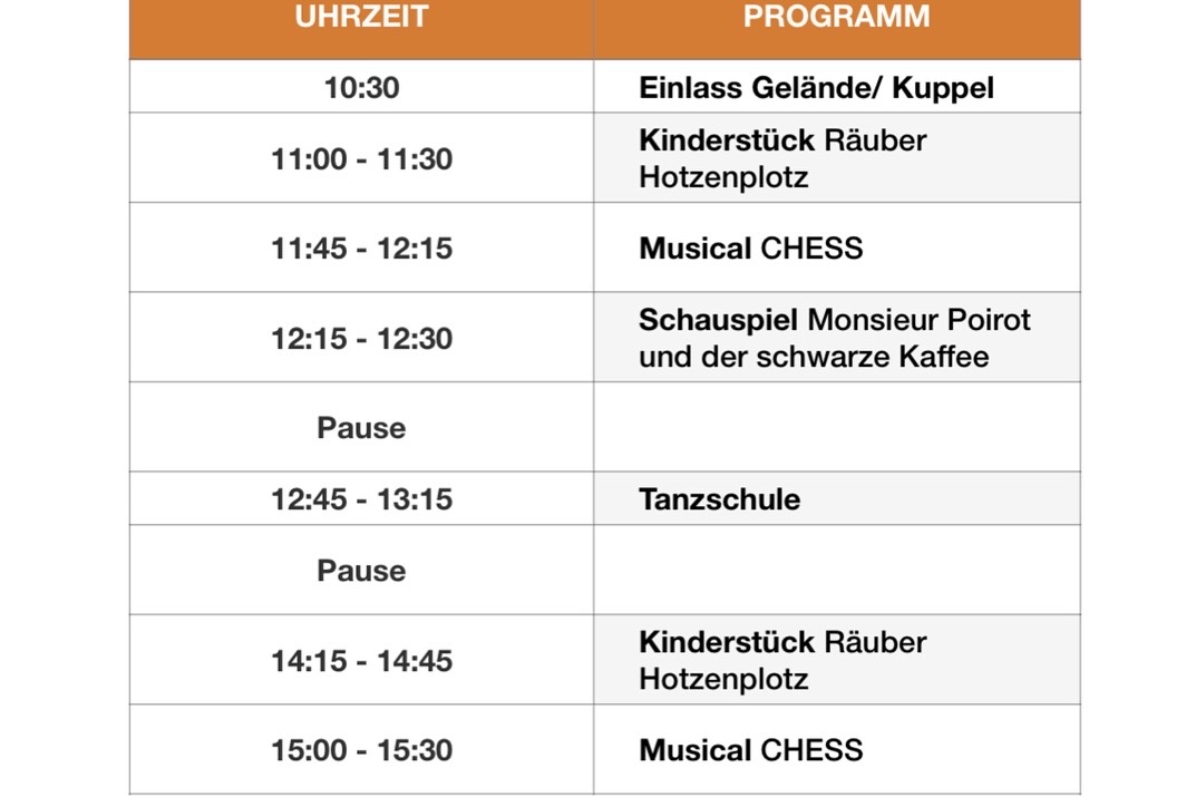 Weiter geht es nach einer kleinen Pause mit dem Musical "CHESS" um 11:45 Uhr und um 15 Uhr.
