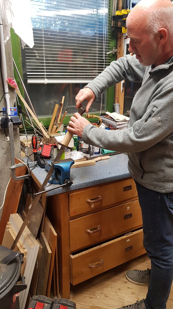 Aber wenn man genau hinhört, hört man doch noch jemanden. Ich gehe den Geräuschen nach und treffe auf Dieter Wolf, zusammen mit Thomas Baumkircher zuständig für die Requisiten.