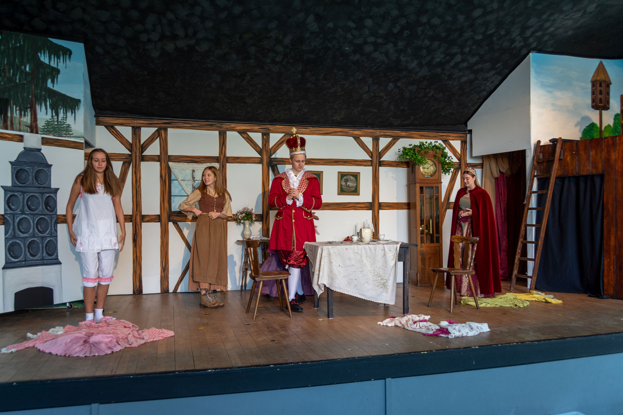 Das Stück sei so besonders weil es keine Haupt- und Nebenrollen gibt, sondern wirklich jeder eine wichtige Rolle im Stück einnimmt. Insgesamt steht eine bunt gemischte Truppe zwischen 15 und 32 Jahren bei dem Stück auf der Bühne. Wenn Not am Mann ist, wird eine Lösung gefunden: „Unsere Magd zum Beispiel übernimmt mal kurz vier Prinzessinnen auf einmal beim Ball. Und König und Königin werden zum Baum umfunktioniert. Aus vermeintlich kleinen Sprechrollen werden wichtige Funktionen welche unser Stück so einzigartig machen“, freut sich Zina. Das ist vor allem deshalb möglich, weil bei dem Stück eingefleischte Theater-Kids mit einigen Jahren Theater-Erfahrung auf der Bühne stehen. Da kommt es schon einmal vor, dass ein Satz spontan umformuliert wird, weil er sich dann besser anhört. Texthänger gibt es bei den Proben natürlich auch hin und wieder. Ganz Profi werden diese aber überspielt und mit Improvisation wett gemacht. Extra Training ist da gar nicht notwendig. Und trotz der zeitintensiven Probenphase kommt die Schule bei den Teenagern nicht zu kurz: Geprobt wird immer am Wochenende.